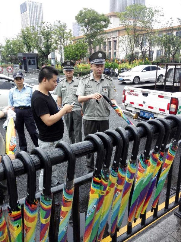 ?。ㄔ瓨?biāo)題:共享雨傘現(xiàn)身杭城 一天就遭城管“下架”天水執(zhí)法中隊(duì):投放存在占用公共設(shè)施的情況)