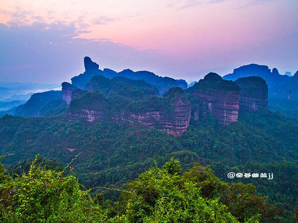 丹霞山之美,是那種把雄奇包裹在雋秀里的含蓄之美。它并不張揚(yáng),遠(yuǎn)望像是一幅優(yōu)美寧靜的水彩畫,顯示出一種優(yōu)雅之美、從容之美和曠達(dá)之美。雖然它的山勢(shì)并不高,但它的許多懸崖峭壁,像刀削斧鑿,直指藍(lán)天,無數(shù)奇巖美洞,隱藏于山中,景色相當(dāng)奇麗。
