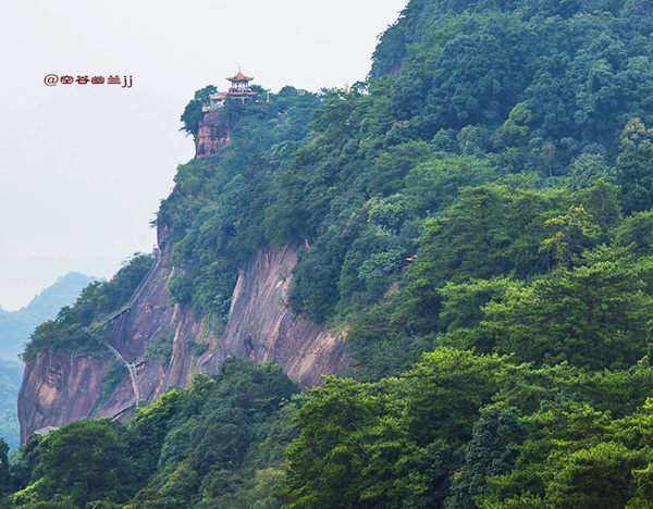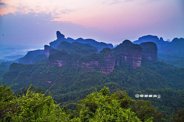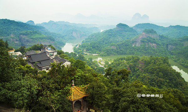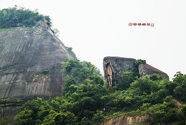 從山腳下乘索道上丹霞山主山之巔—寶珠峰,霧突突的天,在騰空而上的索道上縱目遙望置身于崇山峻嶺之中,不一會(huì)兒就到達(dá)寶珠峰頂,走到東部觀景臺(tái)(韶音亭)遠(yuǎn)眺,群峰疊翠,連綿起伏,“無限風(fēng)光在險(xiǎn)峰”的詩情畫意,得到淋漓盡致的體現(xiàn),讓人感受到世界名山的神奇魅力。