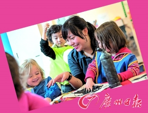 日托中心還為每位學(xué)生準(zhǔn)備了專屬于自己的英文老師與一名中文老師,基本的教學(xué)方式是“一位老師用英文和孩子玩游戲、唱歌、說話,另一位老師用中文重復(fù)”。這種二對(duì)一的教學(xué)方式獲得了不少英國父母的認(rèn)同。