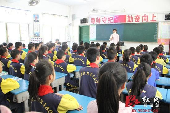 5月9日,邵東縣城區(qū)一完小六年級280班教室里,脖子上戴著頸托的老師李海英,在給學生們上課。都說傷筋動骨一百天,但是李老師在這樣的嚴重傷勢下,只臥床治療二十天多天,病情稍稍好轉后,便重返講臺。她用實際行動感動著師生和身邊的每一個人,受到師生、家長和醫(yī)護人員的一致“點贊”。