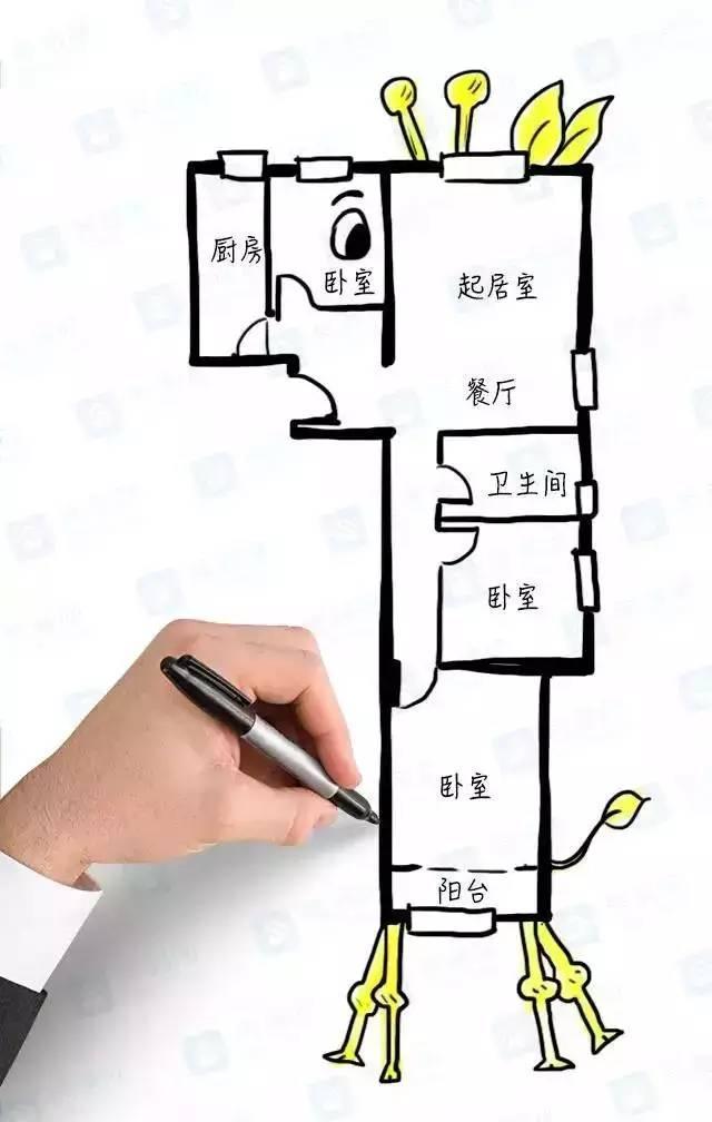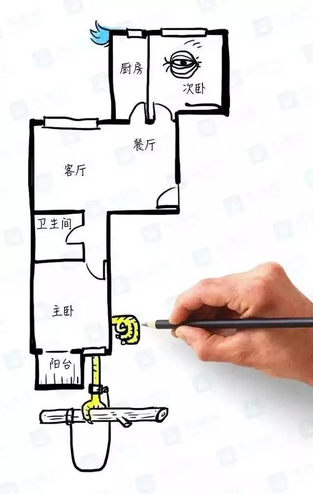 4、從進(jìn)門開始,要到臥室有三個(gè)拐角,實(shí)際空間利用率降低,主臥離衛(wèi)生間實(shí)在太遠(yuǎn),冬天想上個(gè)廁所真是折磨人了。