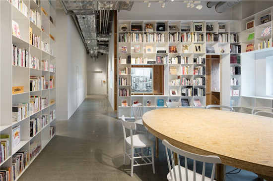 schemata第一次整修的時(shí)候包括有攝影工作室、廚房和餐廳。最近整修包括大型開(kāi)放式的空白庫(kù)??恐鴫Ρ诘陌咨墓褡永镅b滿(mǎn)了書(shū),透過(guò)這個(gè)小櫥窗可以看到廚房里面的情景。