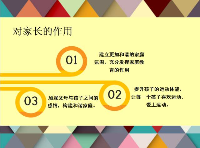 “趣味親子運(yùn)動(dòng)趴”根據(jù)孩子年齡不同設(shè)置指標(biāo),由家長(zhǎng)和孩子共同參與、相互協(xié)作完成,是一次從耐力到動(dòng)手能力、反應(yīng)力到創(chuàng)造力,速度與平衡全面考量的一系列親子活動(dòng),從“歡樂親子跑”到“趣味體能大沖關(guān)”,不但提高幼兒的活動(dòng)技能,開拓孩子們的視野,增加孩子們的探索精神,增強(qiáng)少年兒童的身體素質(zhì)的,又寓教于樂,有利于孩子們身心健康成長(zhǎng),同時(shí)讓家長(zhǎng)們也了解正確而有趣的運(yùn)動(dòng)方式,更好的增進(jìn)父母與孩子間感情。
