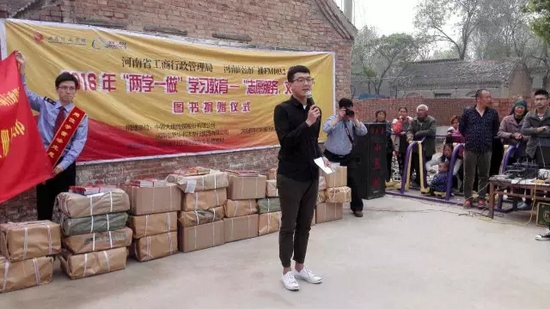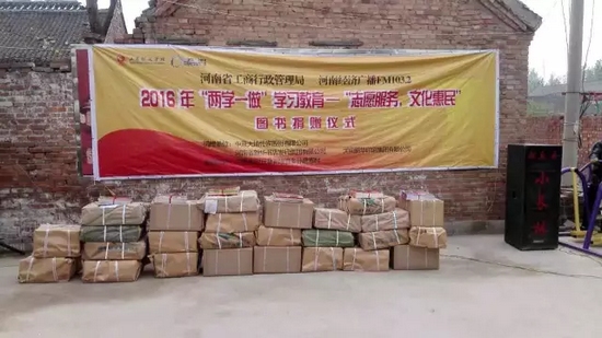 今天,河南省工商局聯(lián)合河南經(jīng)濟廣播FM1032開展“兩學一做”志愿服務文化惠民圖書捐贈活動,來到封丘縣荊隆宮鄉(xiāng)孫蔡寨村。