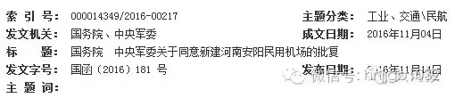 國務(wù)院 中央軍委關(guān)于同意新建河南安陽民用機(jī)場的批復(fù)