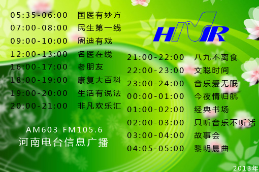 新舊交替,歲月輪回。為回報(bào)廣大聽眾一直以來(lái)的支持與厚愛,從2013年元月1日起,全新改版的AM603、FM105.6河南電臺(tái)信息廣播將精彩綻放。