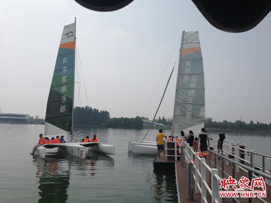 映象網訊 (記者 殷清卉)提起帆船,大家一般想起在大海里暢游的感覺,但是現(xiàn)在在我們鄭州也可以玩帆船了,7月27日,來自全省各地的300多名幸運聽眾,便在河南電臺信息廣播《房產江湖》節(jié)目組的帶領下,在雁鳴湖國際假日公園過了一把帆船癮。