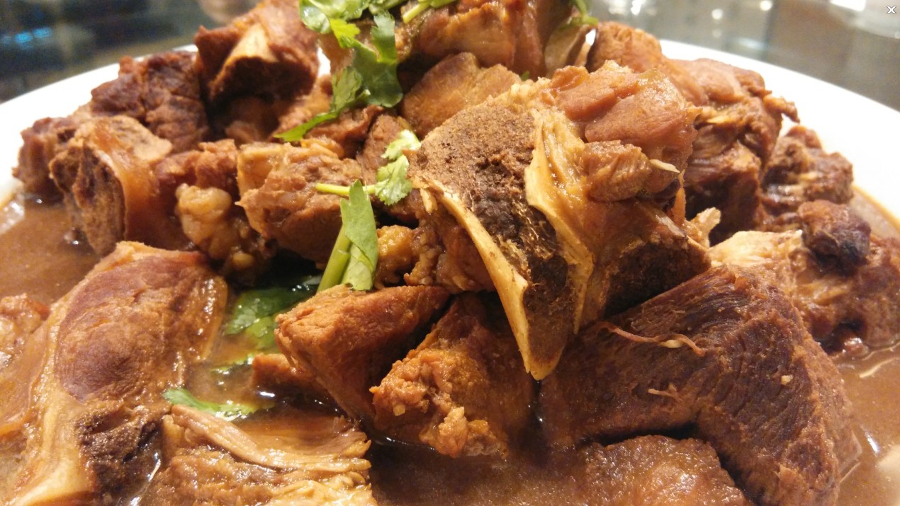 這道菜,我小時(shí)候是吃過(guò)的,現(xiàn)在吃起來(lái)口味依舊,心里忽而很暖。大肉與骨頭之間沒(méi)有太多的牽連,很利口,肉質(zhì)也煮的剛好,嚼起來(lái)很有質(zhì)感汁水淋漓,骨關(guān)節(jié)處的軟骨很脆,有一種別樣的滋味,看著咕嘟嘟冒著的熱氣,食欲也開(kāi)始沸騰了。