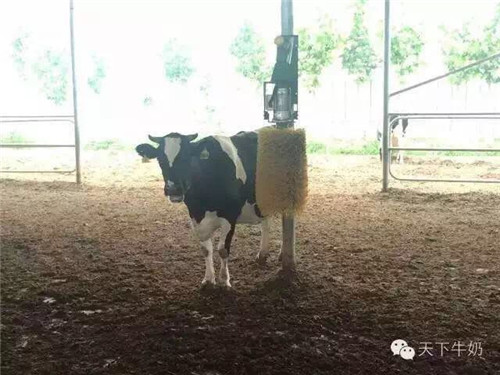 自動(dòng)按摩器:只要奶牛觸動(dòng)它,它就開始旋轉(zhuǎn),可以對(duì)奶牛進(jìn)行按摩。這些奶牛也有“組織”,誰先誰后來按摩都有“規(guī)矩”。