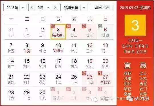 今年九月三日全國(guó)放假一天!于是網(wǎng)友們開(kāi)始腦洞大開(kāi),研究起來(lái)怎么換休、請(qǐng)假可以達(dá)到本月休假的最大值!其中有網(wǎng)友調(diào)換出最長(zhǎng)達(dá)16天之久!!!對(duì)的,你沒(méi)有看錯(cuò),16天,半個(gè)月?。?!老板會(huì)瘋掉么???