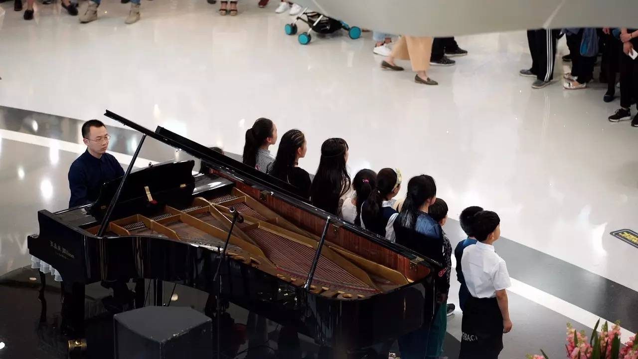 看著孩子還是不說話,旁邊的鋼琴師就在這時,彈奏了起來……