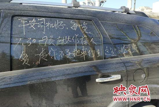 映象網(wǎng)快訊(記者 邱延波 文/圖)眾所周知,在全國(guó)各地,大爺大媽們對(duì)廣場(chǎng)舞的熱愛(ài),幾乎是風(fēng)雨無(wú)阻,雷打不動(dòng)。鄭州市一車輛停在路邊,影響了大爺大媽們跳廣場(chǎng)舞,是可忍孰不可忍,他們?cè)谲嚿蠈懴拢⑼海?,提醒車主早點(diǎn)把車開(kāi)走。
