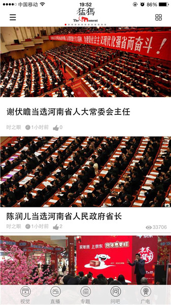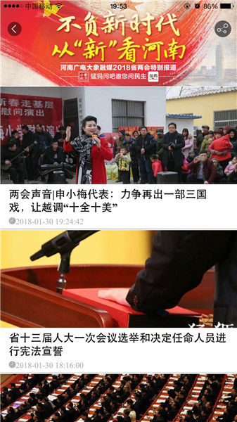 映象網(wǎng)訊(記者 秦雯)看兩會最熱最新鮮,看百姓關(guān)注,看代表委員風(fēng)采,看各界如何解讀報告。1月22日起,河南進入2018兩會時間。大象融媒帶著問題聚焦兩會,帶著答案回應(yīng)網(wǎng)民。其間,大象融媒旗下所屬各媒體大顯身手,貢獻出大量精彩的報道,直播、高清圖、系列策劃及H5產(chǎn)品等,這些內(nèi)容一經(jīng)推送,就吸引百姓高度關(guān)注,有些板塊更是形成“兩會熱門話題”和“網(wǎng)絡(luò)熱詞”,被網(wǎng)友分享,引代表委員熱議。