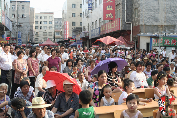 本次活動(dòng)是在河南進(jìn)行的首場(chǎng)活動(dòng),當(dāng)天非常炎熱,但是大家看戲的熱情絲毫沒(méi)有減弱。街道里擠滿了前來(lái)看戲的居民,大家一邊鼓掌一邊揮動(dòng)著扇子,別有一番風(fēng)味。整個(gè)活動(dòng)持續(xù)兩個(gè)半小時(shí),隨著演出的進(jìn)行,觀眾的熱情不斷高漲,人群中時(shí)而掌聲如雷,時(shí)而捧腹大笑?;顒?dòng)結(jié)束之后,觀眾依然不肯離場(chǎng),當(dāng)?shù)責(zé)崆榈膽蚯鷲?ài)好者紛紛上臺(tái),繼續(xù)著自?shī)首詷?lè)的活動(dòng)。