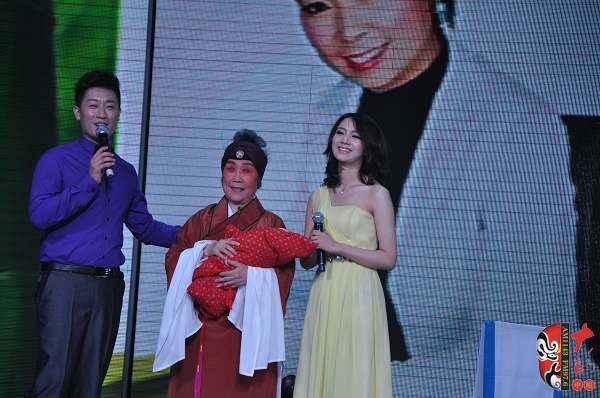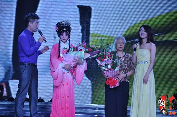 在6月16日舉辦的關(guān)小鳳個人戲曲專場中,關(guān)小鳳之女、24歲的張聰表演了豫劇《情斷狀元樓》“打神告廟”及《抬花轎》的“坐轎”兩折戲。畢業(yè)于河南省藝校的張聰現(xiàn)場表演稍顯稚嫩,但也獲得了觀眾的熱情鼓勵。張聰在接受記者采訪時說,自己戲校畢業(yè)之后到了福建省一閩劇團工作,已經(jīng)有五、六年未接觸豫劇了。媽媽歷經(jīng)艱辛把自己帶大,特別不容易,這次為了支持媽媽的專場演出,她專程回河南、花十天時間趕排了兩折戲……在張聰表演完《抬花轎》的“坐轎”一折,一位身穿狀元紅袍、手捧鮮花、操南方口音的英俊小伙上臺向“周鳳蓮”求婚,經(jīng)張聰介紹,觀眾才豁然明白,英俊小伙乃她的老公,結(jié)婚時,媽媽關(guān)小鳳因為忙于工作未能參加,借此現(xiàn)場要補行跪拜大禮,以感謝母親的養(yǎng)育之恩。此情此景,讓現(xiàn)場不少觀眾為之動容。