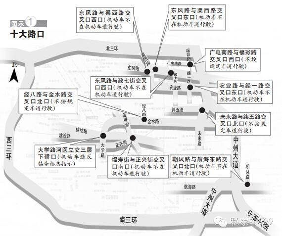 1、經(jīng)八路與金水路交叉口北口(不按規(guī)定車道行駛)