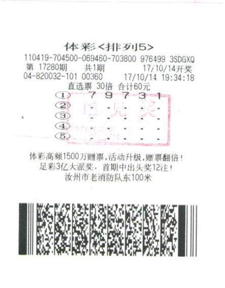 10月14日晚開獎(jiǎng)的排列五第17280期,全國共開出一等獎(jiǎng)47注,位于河南汝州市老消防隊(duì)東100米的4104820032101網(wǎng)點(diǎn)彩民中得35注,其中30注被彩民童先生中得。10月16日上午,童先生來到河南省體育彩票管理中心兌獎(jiǎng),獎(jiǎng)金共計(jì)300萬元。