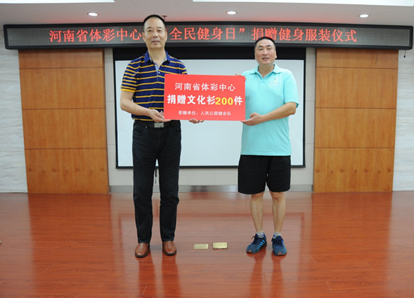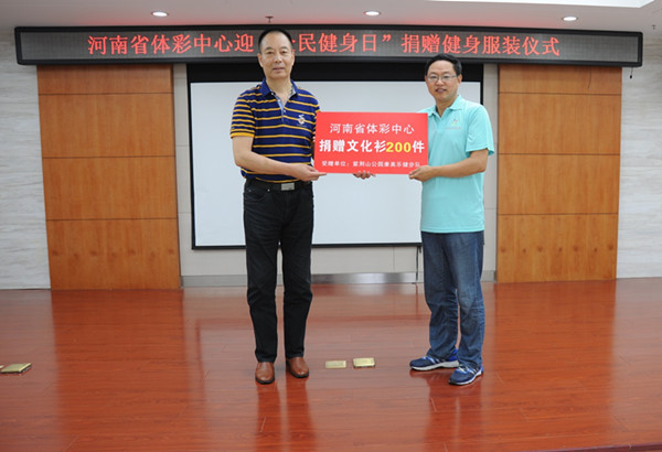 今年的8月8日將迎來(lái)我國(guó)第8個(gè)“全民健身日”,為了有力支持我省的全民健身工作,滿(mǎn)足廣大人民群眾日益增長(zhǎng)的健身需求,河南省體育彩票管理中心于7月29日上午向社會(huì)團(tuán)體和今年我省“全民健身日”主題活動(dòng)舉辦地捐贈(zèng)了3000件體恤衫,并在河南體彩中心會(huì)議室舉行了簡(jiǎn)短的捐贈(zèng)儀式。