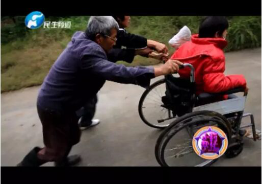[摘要] 每周的兩三天時間里,一段頗不好走的山路上,總會出現(xiàn)這樣一家人的身影,坐在輪椅上的是女兒愛平,年僅42歲的她患尿毒癥已有十多年。