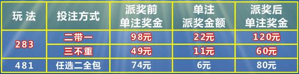 本次派獎既有彩民們喜聞樂見的老朋友任二全包”;也有近段時間火熱彩市的新朋友“二帶一”和“三不重”,以上3種投注方式參與派獎,最高加獎幅度達(dá)22.45%。