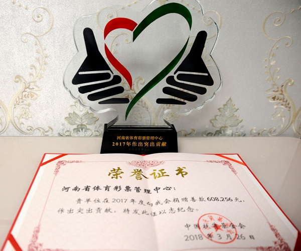 河南省體育彩票管理中心榮獲突出貢獻獎