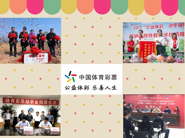 河南省體育彩票管理中心在2015年實現(xiàn)年銷量100億元突破的基礎(chǔ),2017年再次實現(xiàn)了年銷量133億元和累計銷量754億元的兩項歷史突破,累計籌集體彩公益金209億元。除了體彩公益金為社會造福外,河南體彩還積極籌措發(fā)行費,開展惠及大眾的公益活動,涵蓋資助優(yōu)秀貧困大學(xué)生和貧困兒童、關(guān)愛環(huán)衛(wèi)工人、支持公益植樹、資助孤殘兒童、幫扶孤寡老人、資助大型全民健身賽事、愛心送考、幫助急難群體等。 (凡高峰)