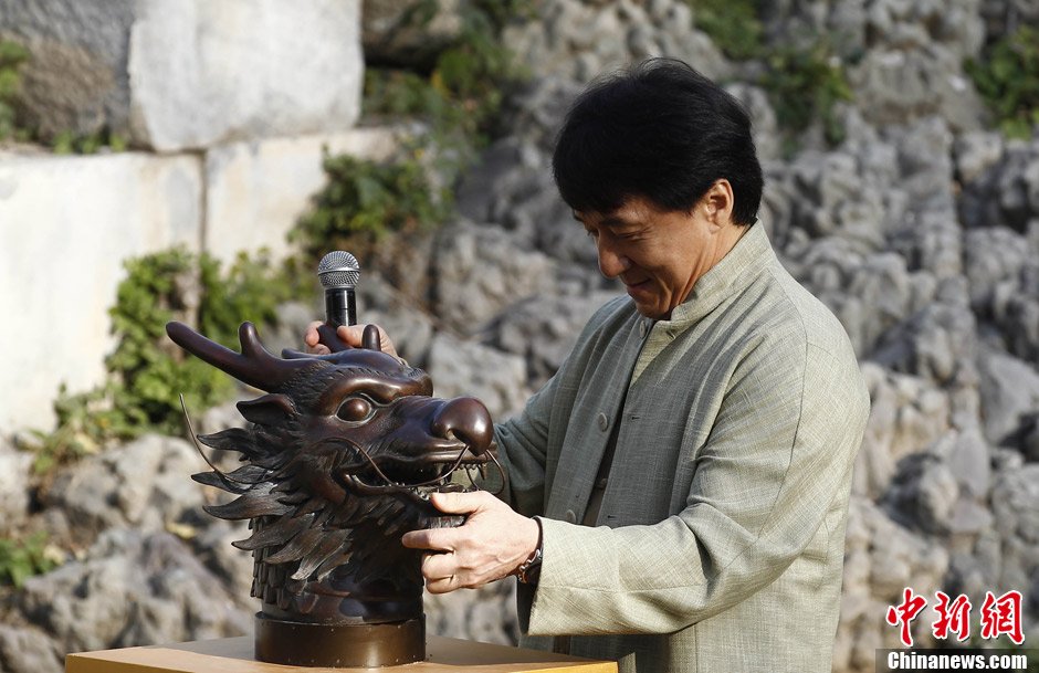 2012年10月30日,國際影星成龍在北京圓明園舉行儀式,將在電影《十二生肖》中的“十二獸首”捐贈