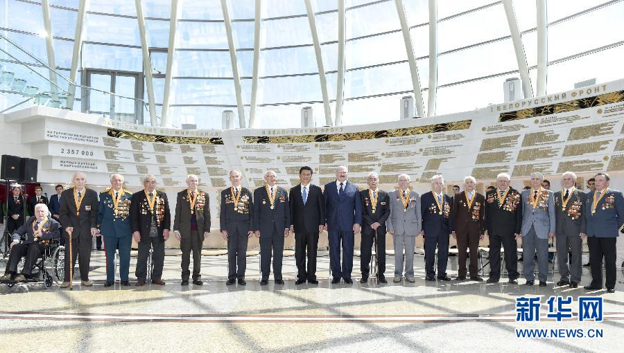 5月11日,國(guó)家主席習(xí)近平同白俄羅斯總統(tǒng)盧卡申科在明斯克衛(wèi)國(guó)戰(zhàn)爭(zhēng)歷史博物館會(huì)見(jiàn)15名白俄羅斯第二次世界大戰(zhàn)老戰(zhàn)士代表。