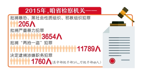 去年,我省檢察機關決定逮捕涉嫌職務犯罪1760人,其中部級干部3人,廳級干部48人。此外,在打擊非法集資、促進依法行政、規(guī)范司法方面也取得成效。