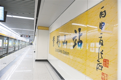 記者昨日走訪地鐵2號(hào)線各車站時(shí)發(fā)現(xiàn),車站內(nèi)部裝修工作已基本完成,車站站名墻首次采用書法藝術(shù)字體。