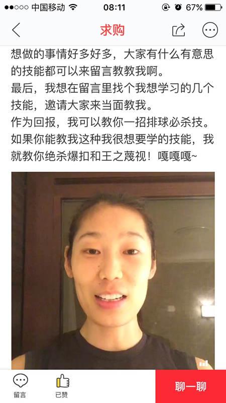 拜MVP為師,難道僅憑一招扯燴面的手藝?8月27日,女排主攻手朱婷在某分享經(jīng)濟(jì)平臺發(fā)布了求購視頻,透露了自己在緊張的訓(xùn)練之余,希望學(xué)到諸如土耳其語、做燴面等新技能。而作為交換,她愿教對方一招“絕殺暴扣”和“王之蔑視”!中國女排MVP上網(wǎng)“賣藝”,分享經(jīng)濟(jì)的玩法說火就火。