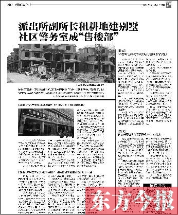 12月20日,東方今報(bào)以《派出所副所長租耕地建別墅 社區(qū)警務(wù)室成“售樓部”》為題,報(bào)道了項(xiàng)城市一派出所副所長租耕地建別墅銷售一事。報(bào)道刊發(fā)后,引起項(xiàng)城市委、市政府高度重視。昨日,記者從項(xiàng)城市委宣傳部獲悉,該副所長被開除公職,項(xiàng)城市委、市政府成立聯(lián)合調(diào)查組,對該區(qū)域開發(fā)事件進(jìn)行拉網(wǎng)式排查。