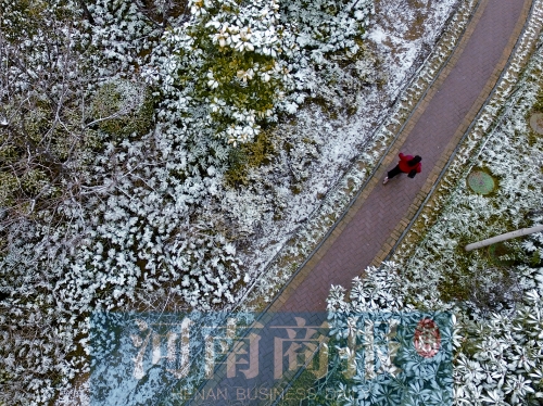 到昨天清晨,鄭州雖不是銀裝素裹,但也有大面積的白色點綴了。常青樹上,蠟梅花瓣上,草坪上,房頂上……