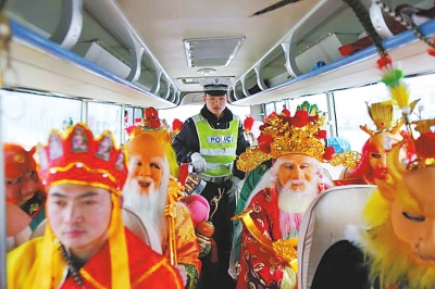 經(jīng)過省交警總隊(duì)核實(shí),濟(jì)源市交警支隊(duì)民警在執(zhí)勤中確實(shí)遇到此事。大河報(bào)記者隨后聯(lián)系到濟(jì)源市交警支隊(duì)宣傳科相關(guān)人士,他講述了這個(gè)事情。2月7日,濟(jì)源交警在濟(jì)源市207國道執(zhí)法服務(wù)站執(zhí)勤時(shí),在檢查點(diǎn)攔下了“孫悟空”駕駛的一輛大巴車,令交警想不到的是,車上居然還坐著一車《西游記》中的“神仙妖怪”,其中有“唐僧師徒”、“財(cái)神”、“土地神”、“小鉆風(fēng)”、“牛魔王”、“獅子精”、“白骨精”等,“當(dāng)時(shí)我們民警檢查時(shí)感覺自己‘穿越’了”。