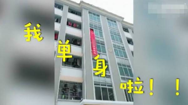 高校女生掛5米條幅 慶祝自己恢復(fù)單身