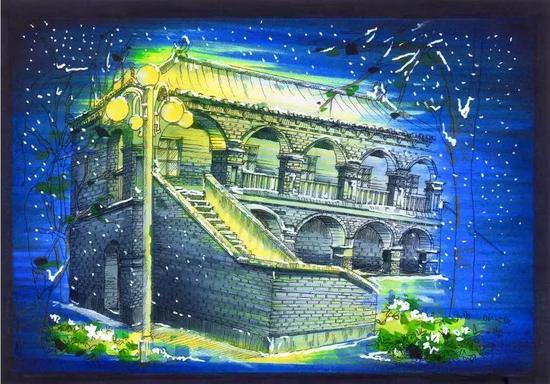 有彩色的付出就有金色的回報(bào)。手繪畫作如此受歡迎,邢年轉(zhuǎn)很受激勵(lì),也由此發(fā)現(xiàn)了潛在商機(jī)。2017年,邢年轉(zhuǎn)和幾個(gè)同學(xué)創(chuàng)辦了公司,邢年轉(zhuǎn)作為美術(shù)總監(jiān),負(fù)責(zé)創(chuàng)作,試推廣的手繪開封的作品也有兩百套。今年,他又參加了尉氏縣規(guī)劃館的籌備,手繪尉氏縣興國寺塔、劉青霞故居紀(jì)念館、老城門和阮籍嘯臺(tái)的復(fù)原圖。