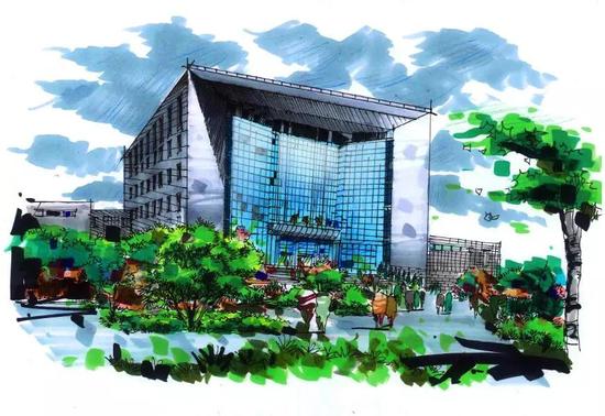 他懷著對(duì)母校的熱愛,手繪了校園建筑