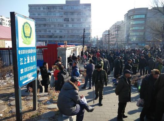 2014年11月15日,星期六,哈爾濱市道外區(qū)北五道街上的集市熱鬧異常,這里是哈爾濱市規(guī)模較大的鳥(niǎo)市之一,除了固定的店鋪外,每到周末就有散戶商販帶著一串裝滿各種鳥(niǎo)的籠子在這里擺攤販賣。