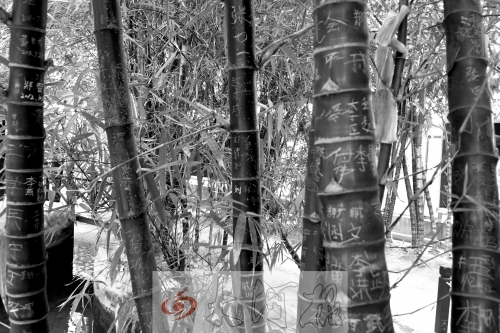 青竹林區(qū)數(shù)百棵竹子上都刻滿了密密麻麻的文字