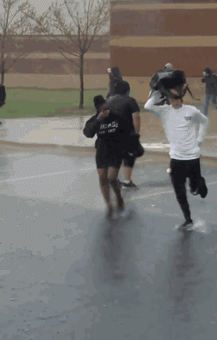 當暴雨來臨,人們的第一反應(yīng)通常是趕緊躲雨。這個可憐的孩子如此孤單,一定是在等待某人的出現(xiàn)……”男孩的一名校友打趣道,他可能“只是在測試防水耳機”。