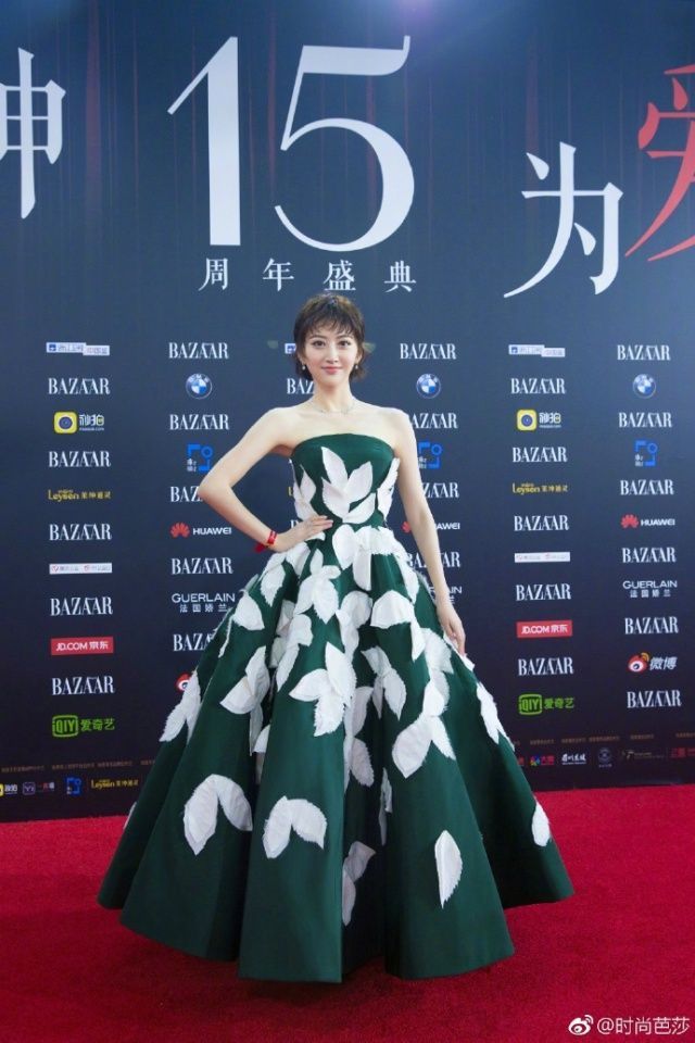 景甜hold住了綠色蓬蓬裙,沒有hold住新發(fā)型。