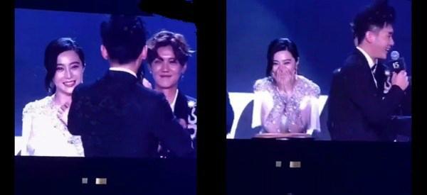 在進(jìn)行到競標(biāo)捐款環(huán)節(jié)時(shí),李晨看著范冰冰清唱王力宏的《唯一》,借由歌詞“你就是我的唯一,獨(dú)自對著電話說我愛你,我真的愛你”的深情告白,“范爺”瞬間變成“范害羞”,捂臉大笑起。站在一旁的鹿晗不停拍手為“大黑?!睉?yīng)援,不知道有沒有被虐到???