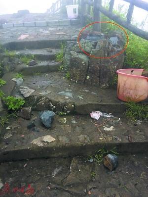另據(jù)隊(duì)長羅燦輝在山頂上察看發(fā)現(xiàn),山頂有多塊巨石被雷電擊碎散落在地面上。其中有一塊被擊碎的巨石,后經(jīng)證實(shí),就是事發(fā)時王女士所站的區(qū)域。