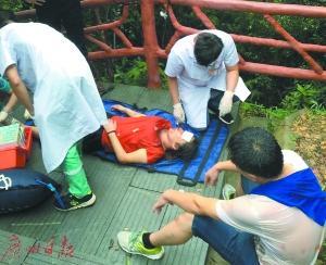 醫(yī)護(hù)人員在半山處對傷者進(jìn)行救治。廣州日報(bào) 圖