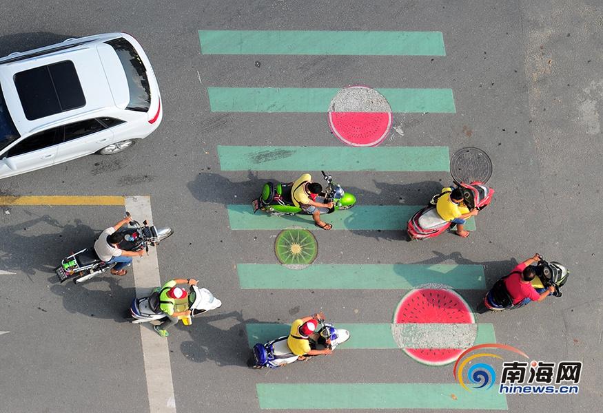 三亞街頭現(xiàn)"水果"斑馬線 這個造型好Q!