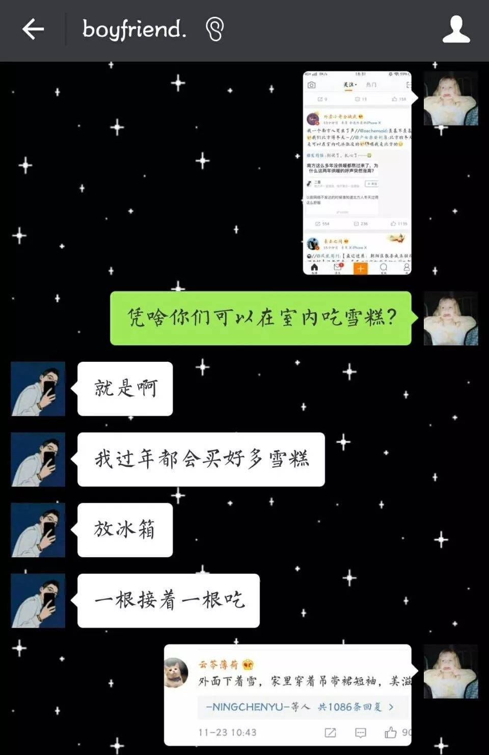 那一定是大冬天吃雪糕啊!
