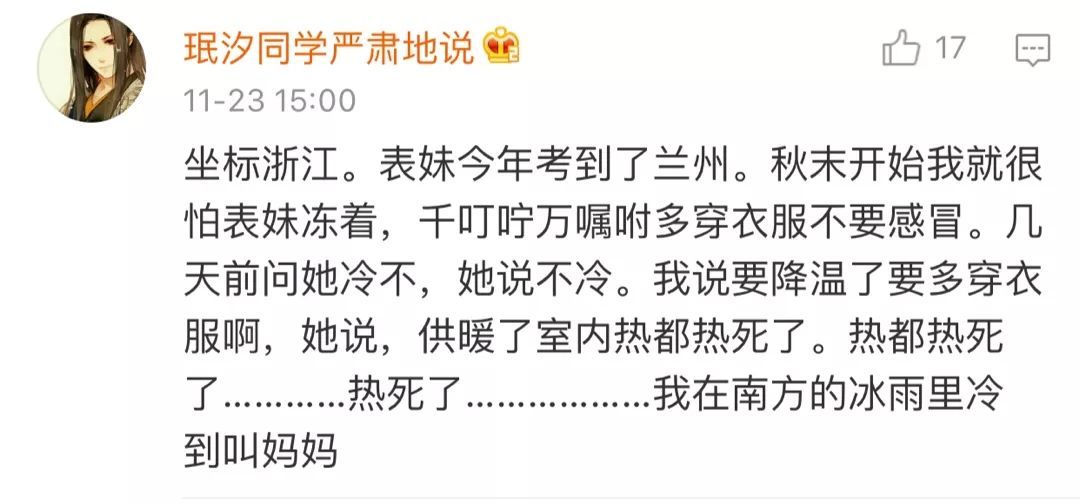 南方的同學(xué)不淡定了