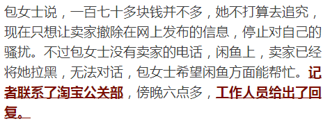 淘寶公關(guān)部 陳?。骸跋挛缥覀?nèi)フ{(diào)查一下情況,目前已經(jīng)關(guān)閉了這個(gè)賣家的賬號(hào),在閑魚我們是有一套監(jiān)管機(jī)制的,會(huì)對(duì)發(fā)布的圖片 ,文字信息,進(jìn)行掃描,然后輔以人工干預(yù)的形式,進(jìn)行管控,如果發(fā)現(xiàn)不合規(guī)的內(nèi)容,會(huì)進(jìn)行屏蔽或者下架,確實(shí)因?yàn)樾畔⒘勘容^大,所以目前還無(wú)法做到,百分之百的實(shí)時(shí)識(shí)別?!?/p>