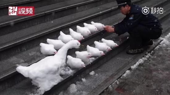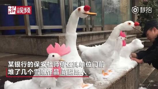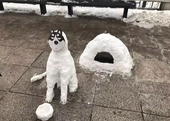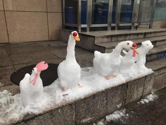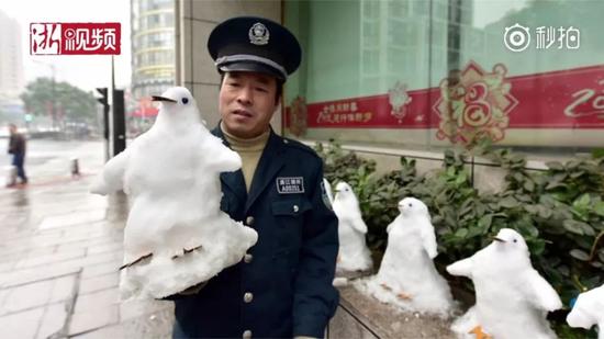 保安下雪后堆了個(gè)"動(dòng)物園" 萌得心都化了